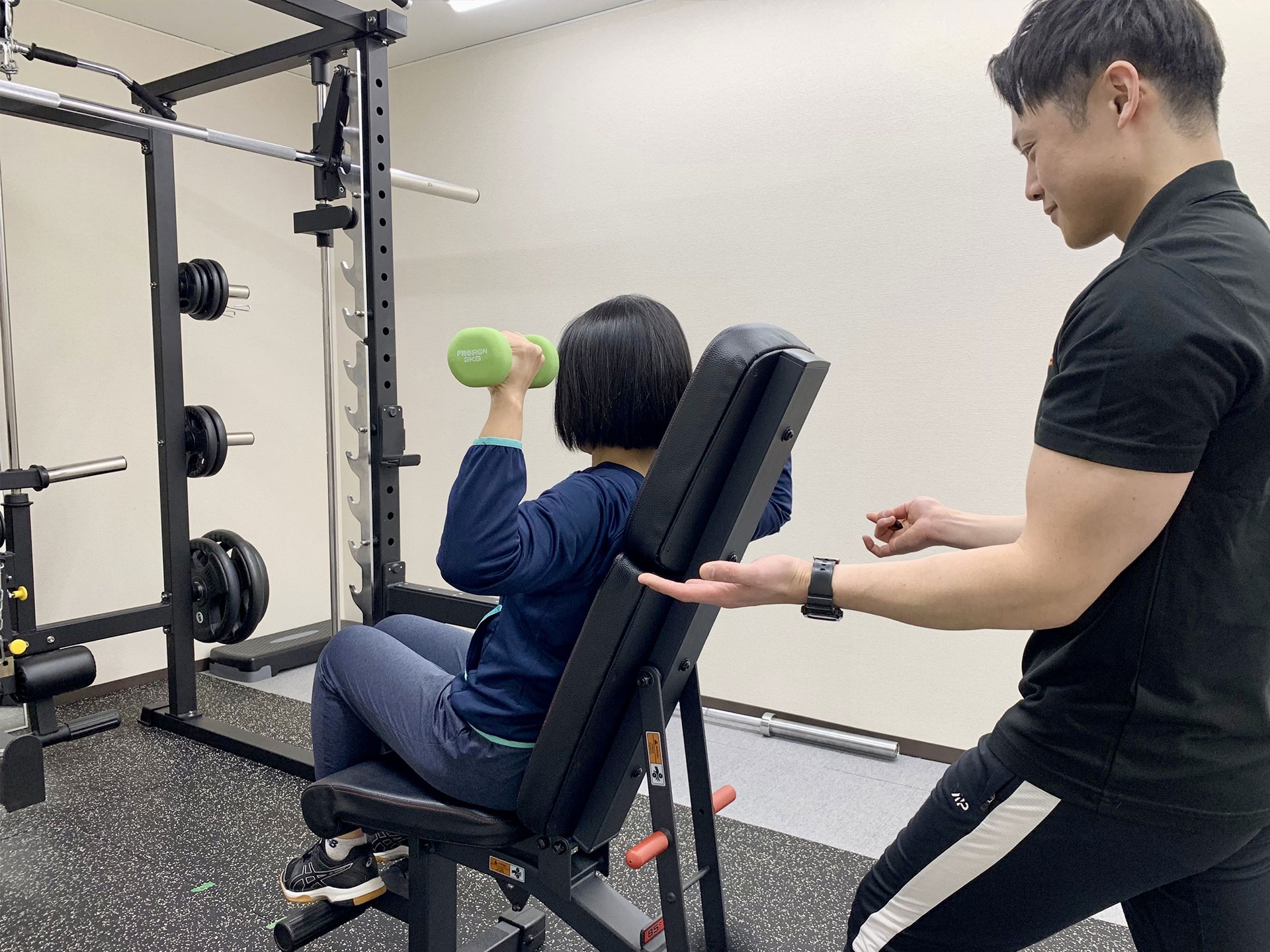 ジムでの筋トレは、しっかりフォームを教えていただき、体調を確認しながらおこなってくれるので無理なく楽しくできました。